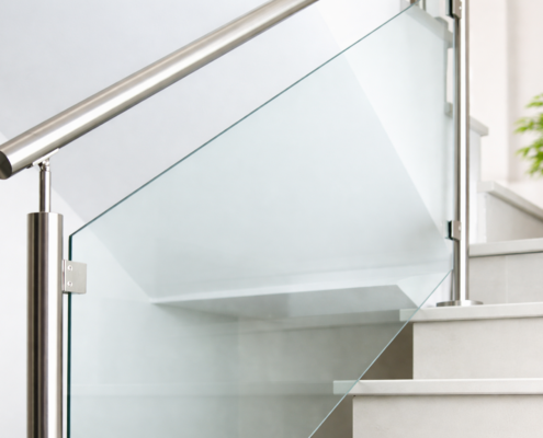 Esta clasificación se basa en los elementos que incorpora la barandilla, ya que no todas las soluciones de vidrio se componen únicamente del panel. Componentes como el pasamanos, el tipo de perfilería o la visibilidad de los anclajes influyen directamente en la estética del conjunto, la sensación de ligereza o solidez visual, el nivel de seguridad percibido y real, el agarre disponible para el usuario y el acabado final del sistema.