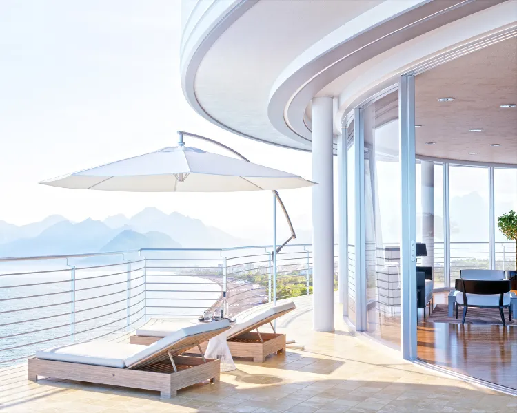 ⇑ Opciones más económicas (150–500 €/m²): incluyen barandillas de cristal o aluminio, techos fijos sencillos y pérgolas con lona tensada. Son ideales si buscas una solución práctica y funcional con una inversión ajustada